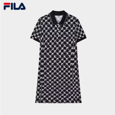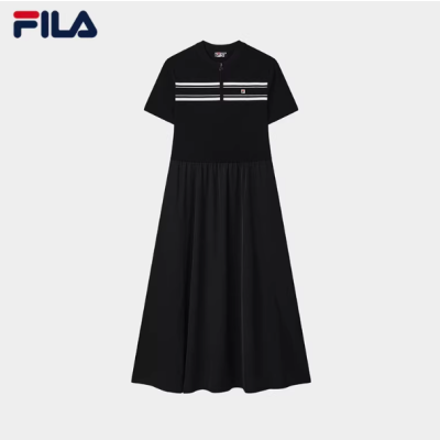 FILA斐乐官方女子连衣裙春夏秋款时尚休闲简约修身短袖收腰连衣裙