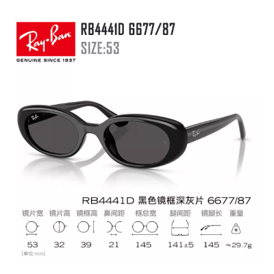 雷朋枕形窄框太阳镜男女防晒潮流墨镜0RB4441D