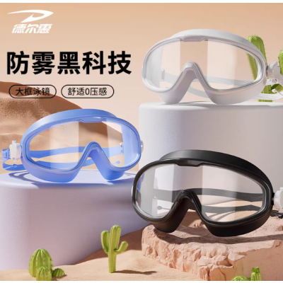 德尔惠泳镜成人男女士防水防雾高清平光大框游泳眼镜漂流潜水装备