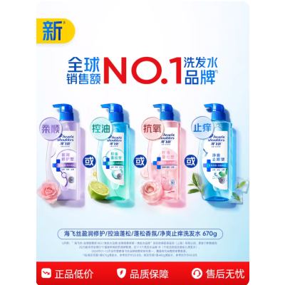 海飞丝去屑清爽控油洗发水止痒/柔顺洗头膏露男女士官方正品任选