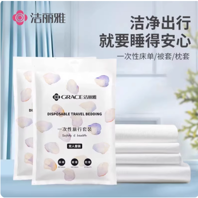 洁丽雅旅行一次性床单被套枕套三件套出差旅游便携酒店3包