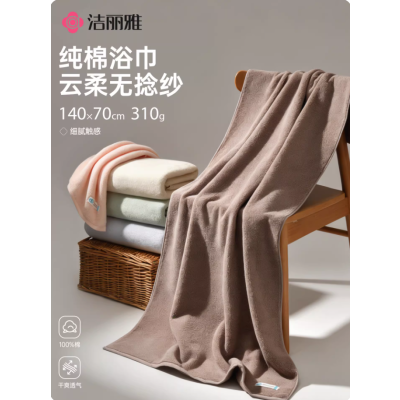 洁丽雅纯棉浴巾成人吸水无捻蓬松柔软2026新款100全棉大毛巾女款