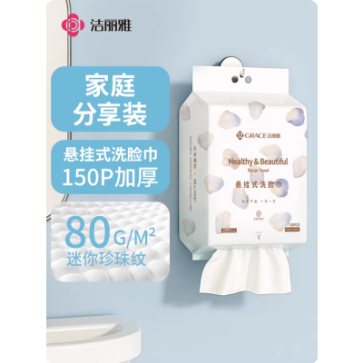 洁丽雅一次性洗脸巾悬挂式加厚纤维洗脸巾珍珠纹洁面巾家庭装150p