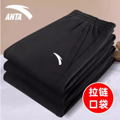 安踏男裤收脚束脚平口裤黑色百搭休闲保暖长裤运动裤