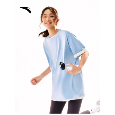 安踏短袖t恤男女同款夏季简约纯色圆领半袖宽松透气情侣休闲上衣