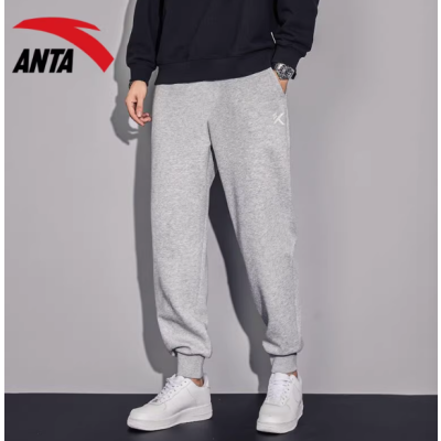 安踏运动裤男裤2026新款针织棉质透气直筒裤灰色宽松休闲长裤卫裤
