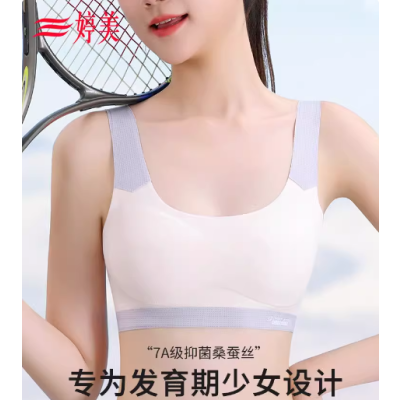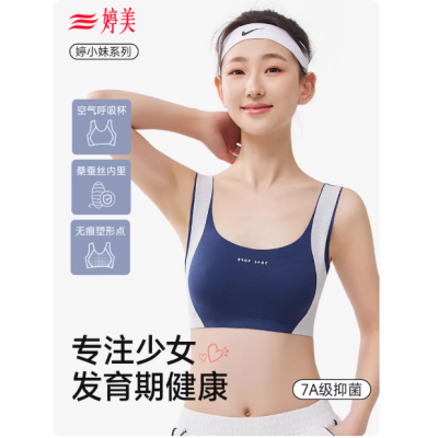婷美【蚕丝抑菌杯】少女生运动防震初高中立体固定杯发育内衣文胸