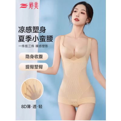 婷美8D连体塑身衣夏薄款收腹提臀产后收小肚子轻薄透气塑形美体衣