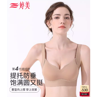 婷美4代提拉防垂粉底液文胸女小胸聚拢收副乳软支撑隐形无痕内衣