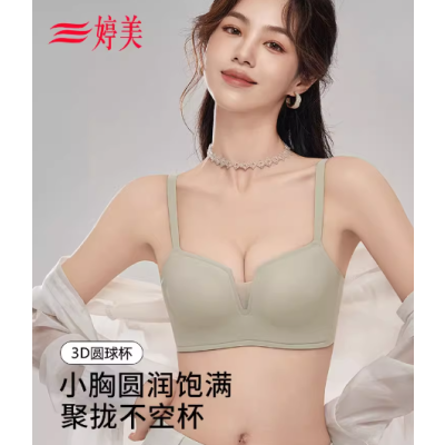婷美小胸聚拢提拉无痕文胸圆球杯软支撑收副乳防下垂美背薄款内衣