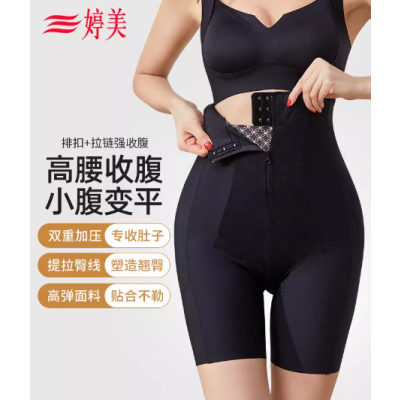 婷美高腰拉链提臀收腹裤隐形强力收小肚子束腰翘臀收胯产后塑身裤