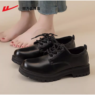 回力乐福鞋女2026春季新款英伦风系带黑色小皮鞋通勤简约舒适女鞋