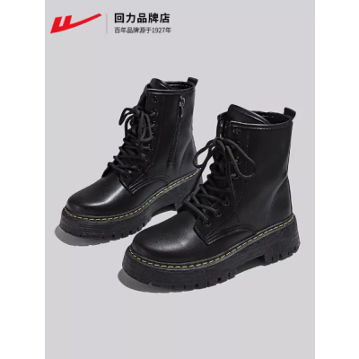 回力马丁靴女2026春季新款女鞋时装靴百搭休闲黑色靴子英伦风短靴