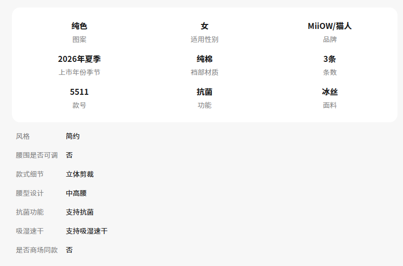 猫人内裤女士冰丝三角裤女生无痕款中高腰隐形夏季平角透气短裤