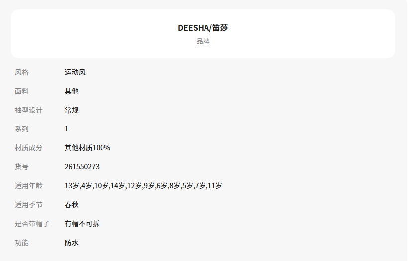 笛莎童装女童外套春季新款中大童女孩儿童洋气运动服连帽风衣防水