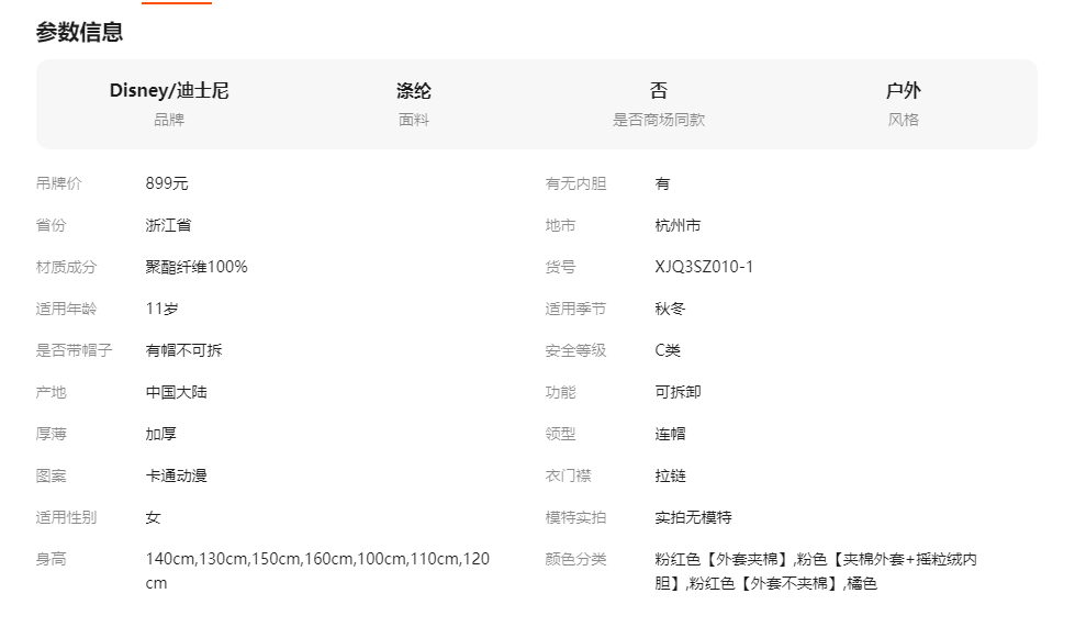 迪士尼童装女童春装外套摇粒绒2026春季新款儿童三合一冲锋衣女孩