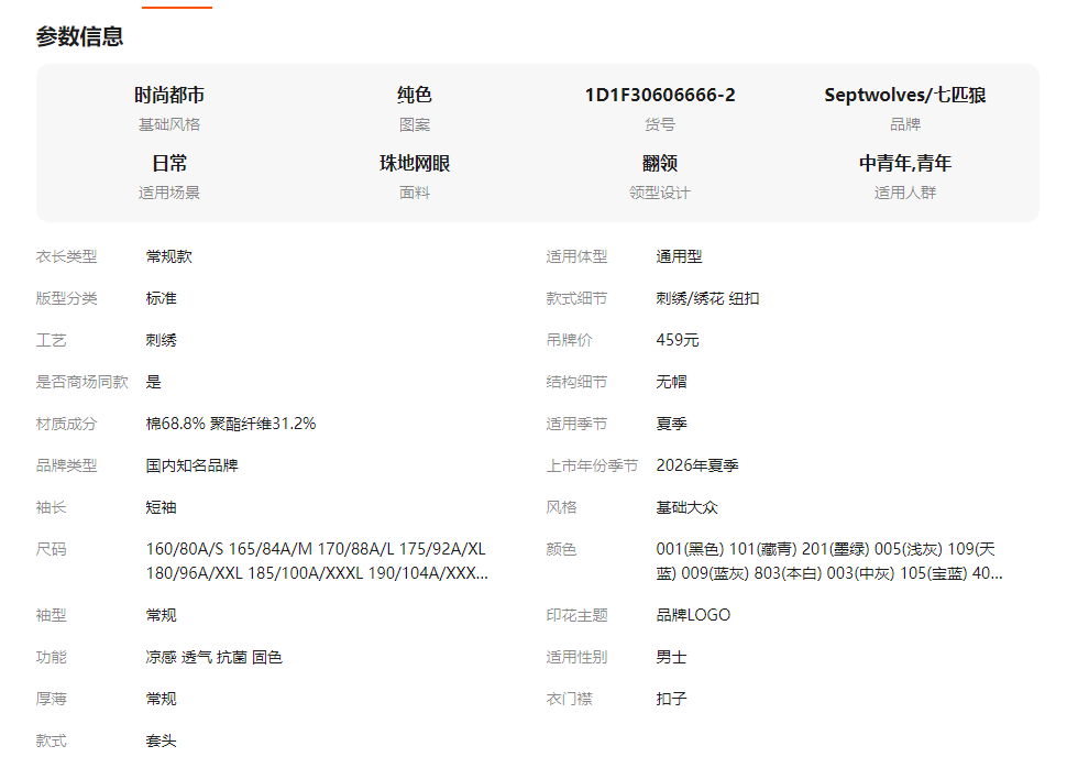 【凉感】七匹狼固色耐洗短袖POLO衫男夏新款透气轻薄冰丝翻领T恤