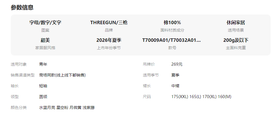 三枪家居服短袖睡裙女2026春夏水柔棉纯棉透气休闲甜美女家居裙