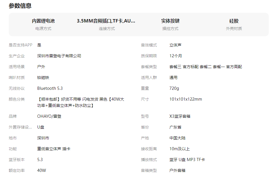 雷登X3 蓝牙音箱大音量超重低音炮无线家用户外便携小音响高音质