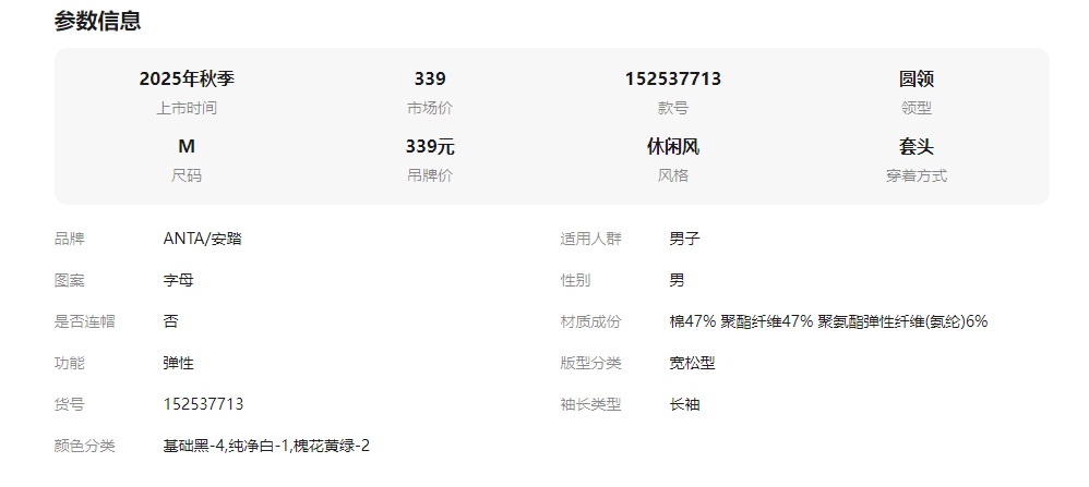 安踏春季卫衣男款2026新款青少年宽松圆领套头衫长袖t恤运动上衣